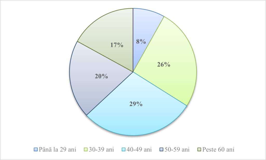 Raportat la structura generală pe grupe de vârstă, în anul 2020 remarcăm un număr de 1036594 de persoane juridice active, dintre care 1483734 număr asociați/acționari persoane fizice. Raportat la structura generală pe grupele de vârstă, cei mai mulți acționari se încadrează categoriei de vârstă 40-49 de ani, urmați de cei din categoria 30-39 de ani, și de cei de vârstă cuprinsă între 50-59 de ani. Doar un procent de 8% dintre acționari se încadrează categoriei de vârstă de până la 29 de ani.