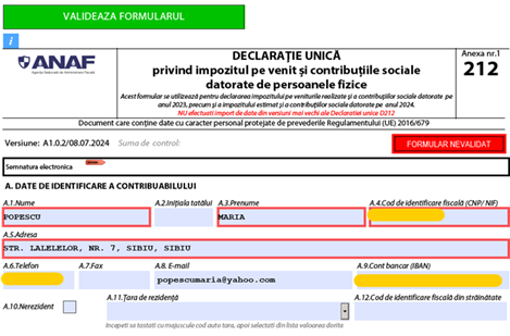 #2 completează secțiunea A. Date de identificare a contribuabilului